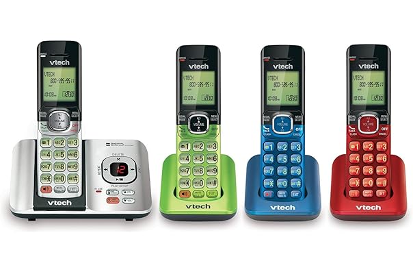 cheap telephones for sale - #1:VTech CS6529-4B 4-Handset DECT 6.0 Cordless Phone with Answering System and Caller ID, Expandable up to 5 Handsets, Wall-Mountable, Blue/Green/Red/Silver
